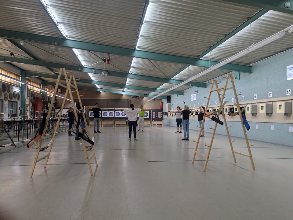 Zunächst ein kurzes Kennenlernen, eine kleine Einheit Materialkunde und der Überblick über Sicherheitsmaßnahmen. Danach wurde der richtige Bogen für jeden Schützen ausgesucht, der passende Arm- und Fingerschutz befestigt und der Bogen gespannt – klingt einfach, aber auch das ist eine eigene Kunst.